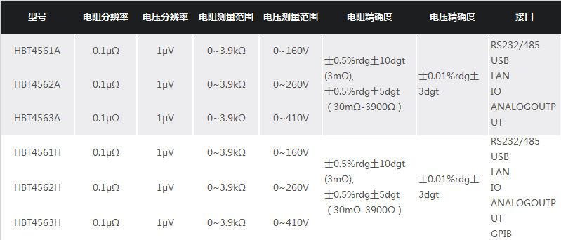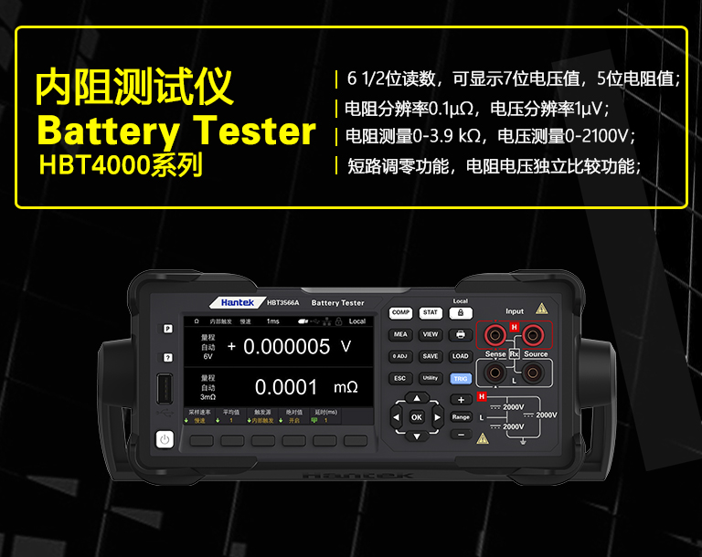 6 1/2位电池内阻测试仪HBT4000系列包含以下特点: