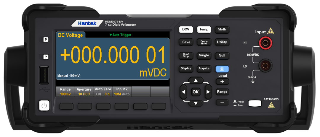 青岛汉泰全新推出7 1/2 位高精度专用电压表HDM3075-DV,专为专注电压测试的用户打造。以7 1/2 位超高精度实现10nV电压分辨率,搭配50k/s高速采集能力,精准捕捉微弱信号与瞬态变化,同时支持温度测量,拓展多场景测试能力。相比功能全面的万用表,这款专用电压表在保证核心高精度测量的同时,大幅降低采购成本;更配备前后双套测试端口,桌面手动测试与系统布线场景可灵活切换,无需反复插拔,显著提升测试效率,让实验室、产线与测试系统能用更经济的方案,获得专业级电压测量体验。