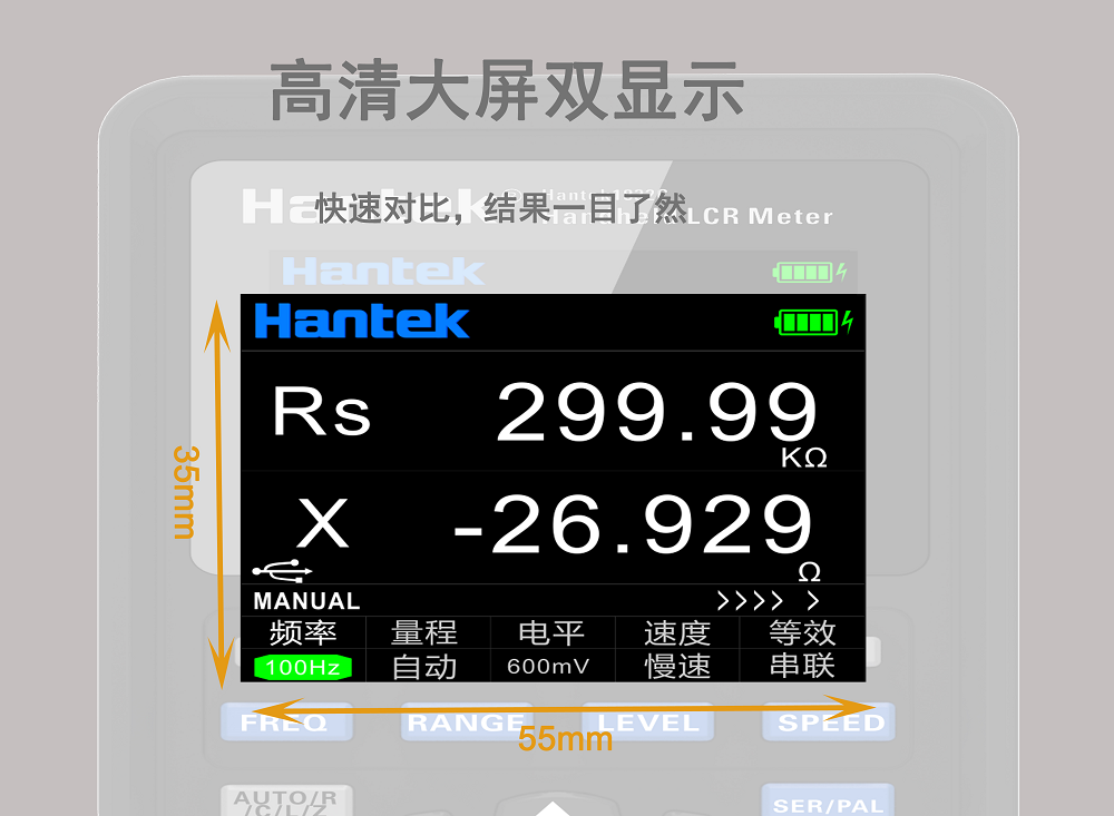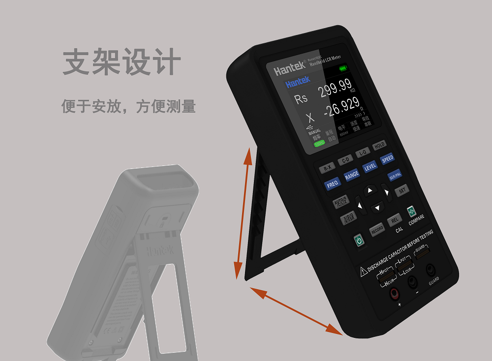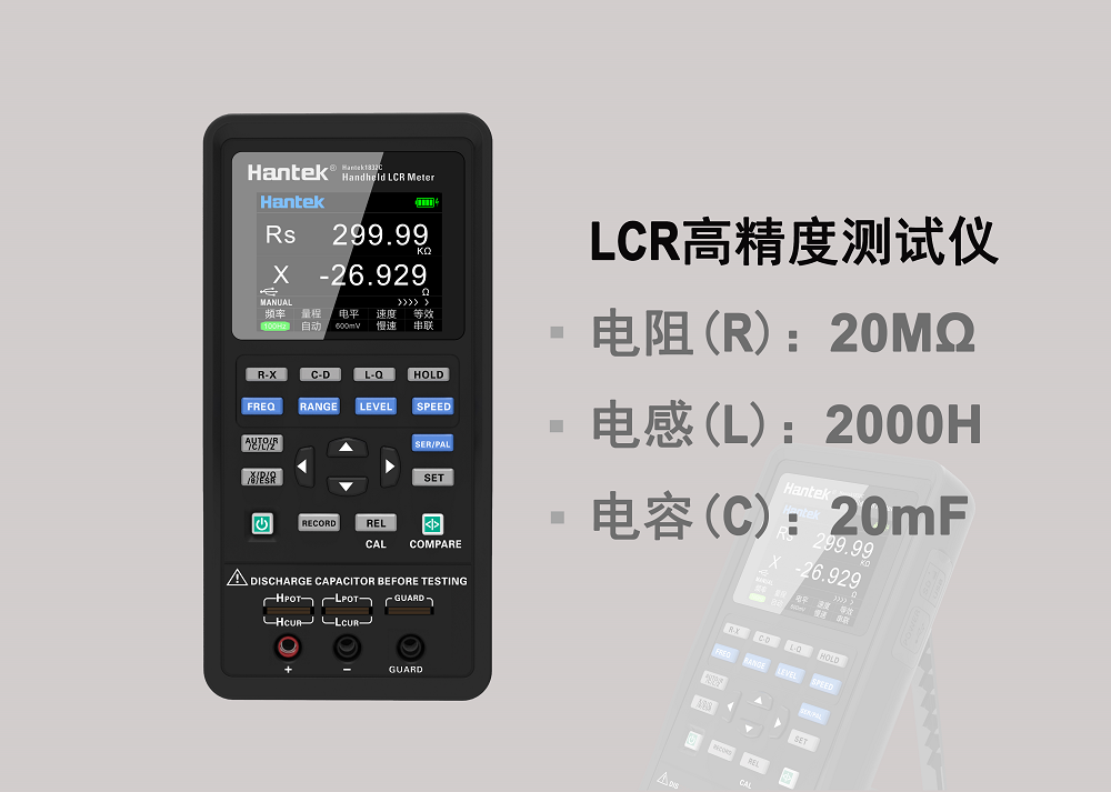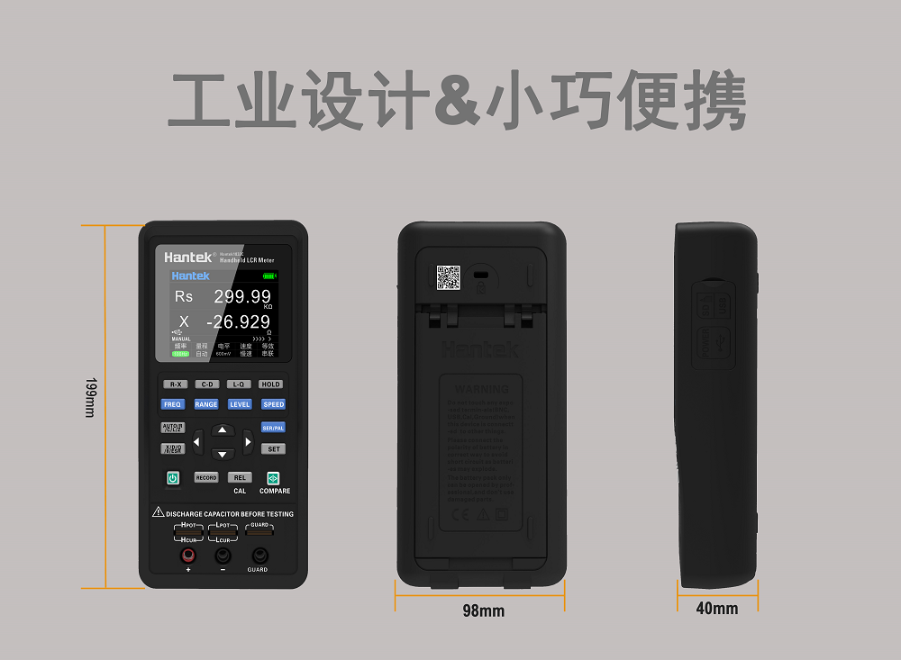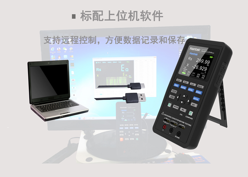 Hantek1832C/Hantek1833C手持LCR是用于测量电感、电容、电阻等元件参数的便携手持式测量仪器,体积小巧,采用5V锂电池供电,既可适用于台式机的应用场所,也可适用于移动测量和手持测量场合。