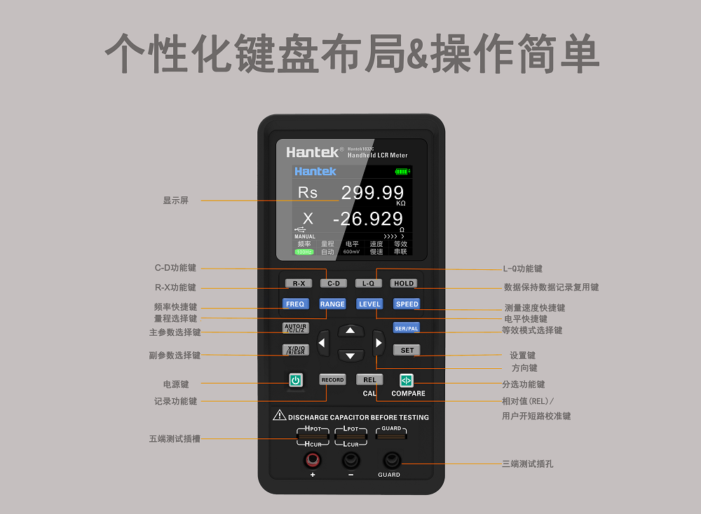 | 测量参数 | 主参数:L/C/R/Z 副参数:X/D/Q/θ/ESR | |||