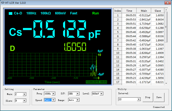| 4μF | 400.0nF~3.9999μF | 5.0%+10字 | 0.05 | 串联 |