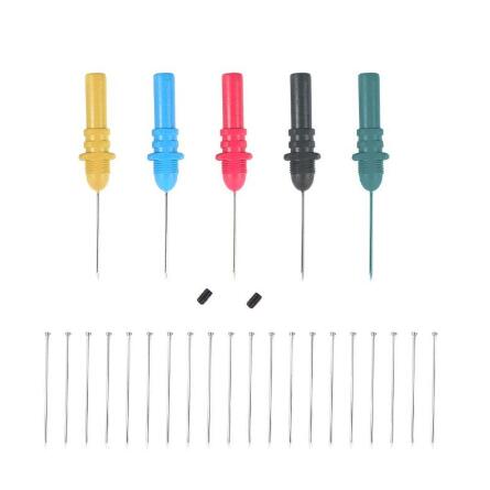 HT307背面探针有很多用途,如背面探针、穿孔和针尖探针。细针头可以滑过密封件,以探测连接器。它们有时被称为针刺探针,用于刺穿电线的绝缘层,以便在不损坏电线的情况下进行汽车电气测量。此外,它们还可以用作针尖探针,同时与小电路板工作。