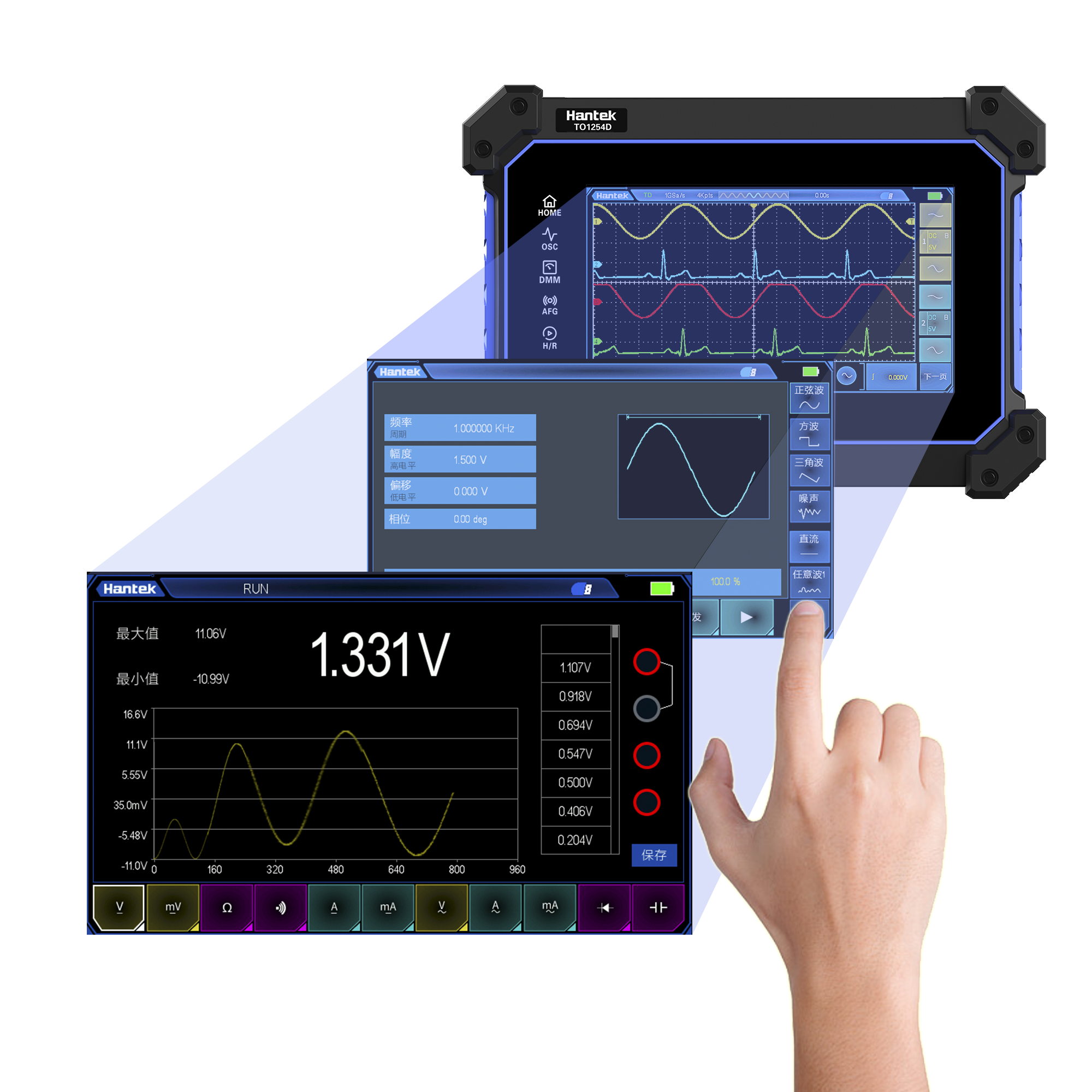 250MSa/s | 示波器/万用表/信号源 单手持握,超长续航时间 悬挂式支架,TypeC通用数据充电线 全功能上位机,数据记录仪功能 |