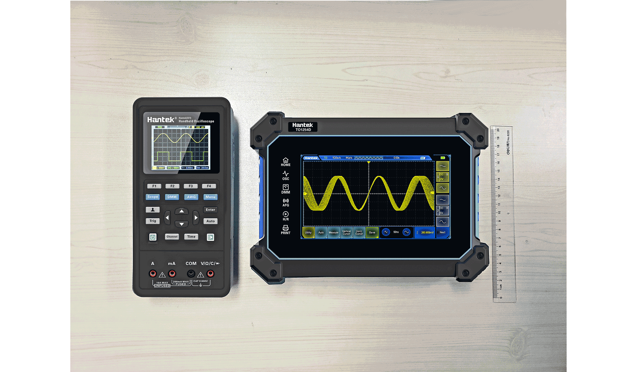 2CH | 1GSa/s | 示波器/万用表/频率计数器/ 数据记录仪/频谱分析, IP-51防水防尘防摔; 防盗锁/Flash照明灯/ 三脚架固定座/可更换电池/2M存储 |