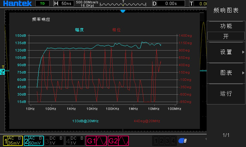 1GSa/s | 示波器+信号发生器 7''高分辨率彩显(800x480); 40K存储,集成USB Host/Device, 支持U盘存储,系统升级 |