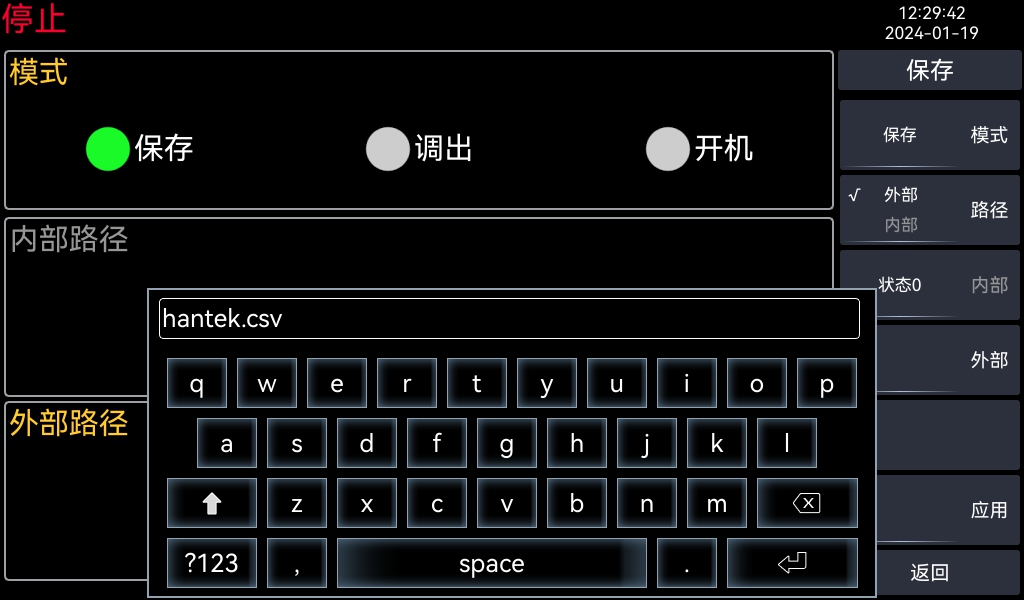 通过USB接口导入CSV 格式文件,生成波形输出。外部存储功能,将系统设置保存到外部存储器中。