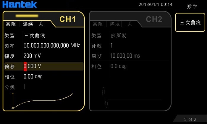 1.25GSa/s | 多种标配波形,标配40余种任意波形, 等精度频率计数器, 64M存储 |