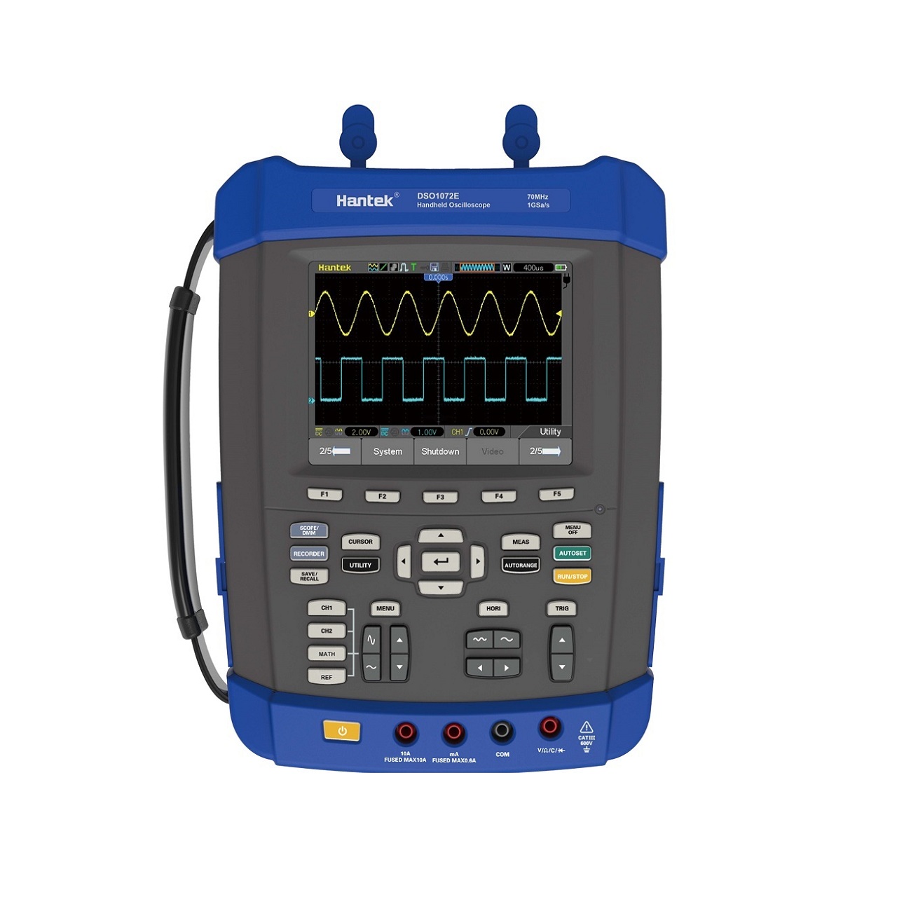 2CH | 1GSa/s | 示波器/万用表/频率计数器/ 数据记录仪/频谱分析, IP-51防水防尘防摔; 防盗锁/Flash照明灯/ 三脚架固定座/可更换电池/2M存储 |