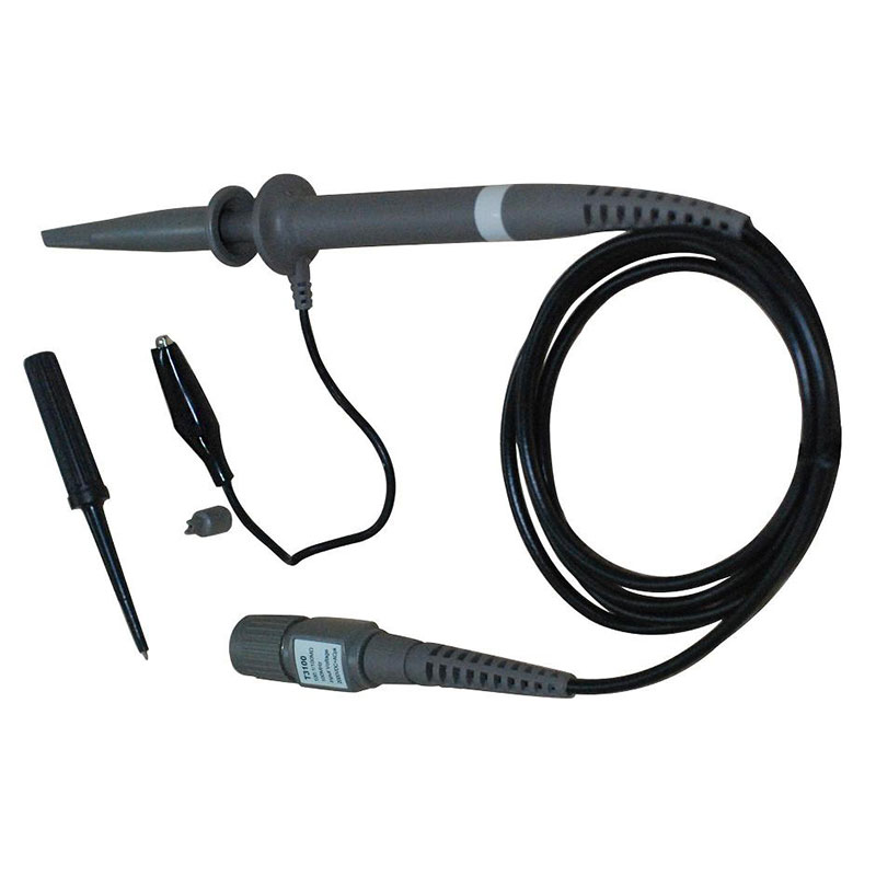 条 | 用于测量超过示波器测量范围的高电压 | 衰减1:100 输入电阻100M欧姆 | 最高工作输入电压*100:<2000VDCPeakAC | |