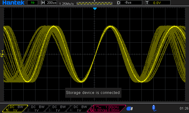 1GSa/s | 40K存储深度,7吋高分辨率彩显 (WVGA 800x480),集成USB Host/ Device, 支持U盘存 储、系统升级; |