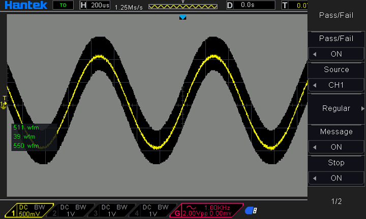 1GSa/s | 400,000 帧 / 秒波形捕获率 16种触发功能,5种串行解码 64M存储深度,80,000段分段采集 7英寸WVGA(800*480)电容触摸屏 |