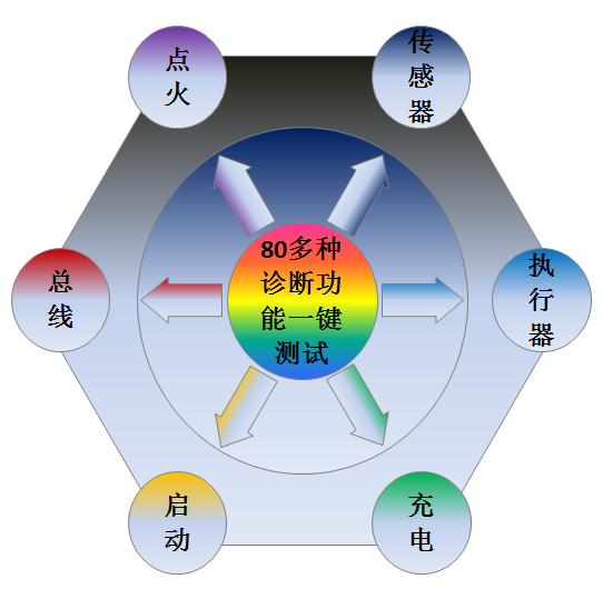 8通道汽车诊断仪,标配80多种汽车诊断功能(点火/传感器/总线检测/执行器/启动&充电等);