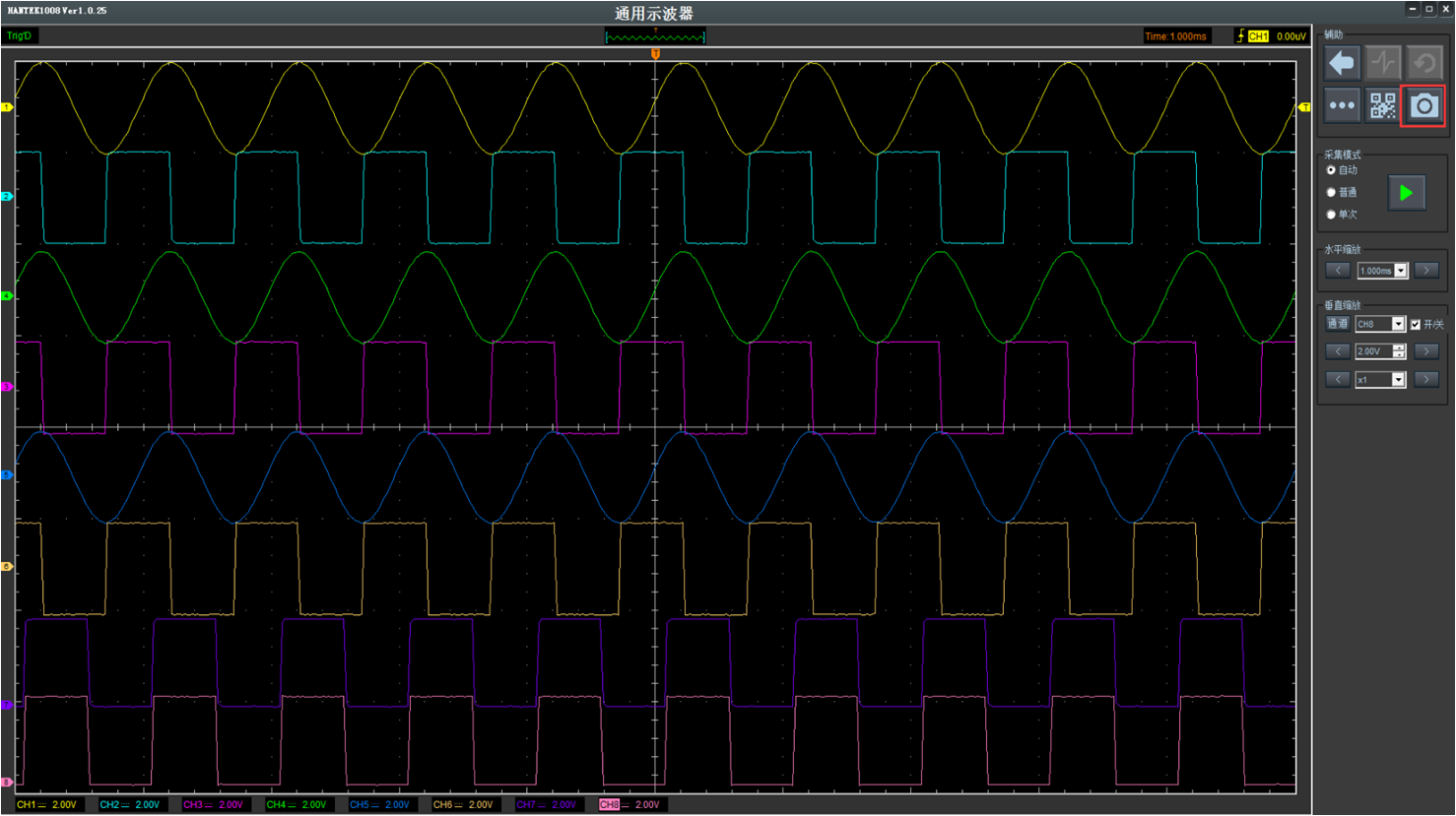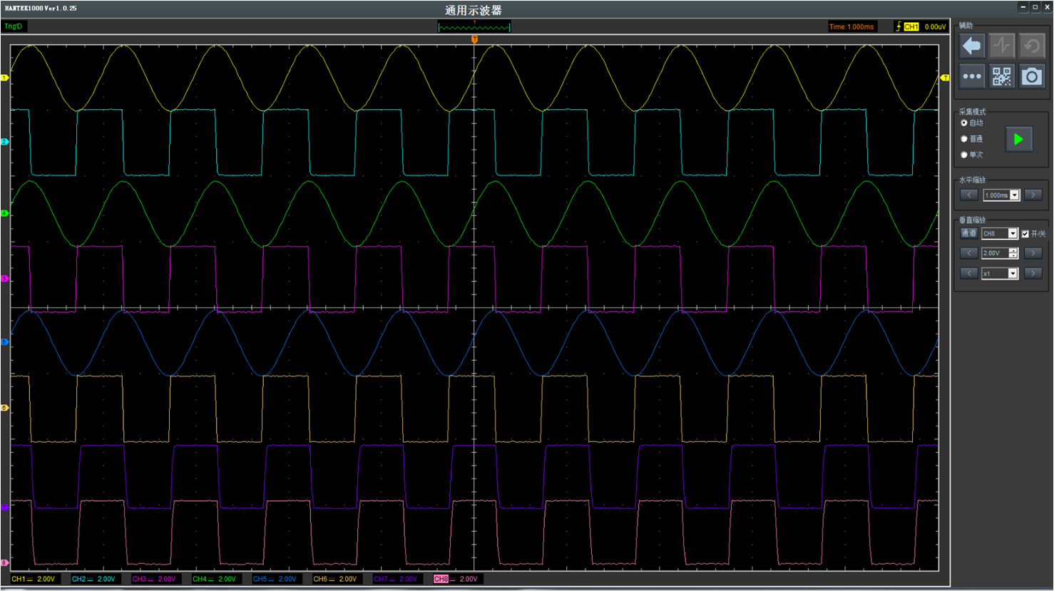 | 触发源 | CH1, CH2,CH3,CH4, CH5, CH6,CH7,CH8 | ||