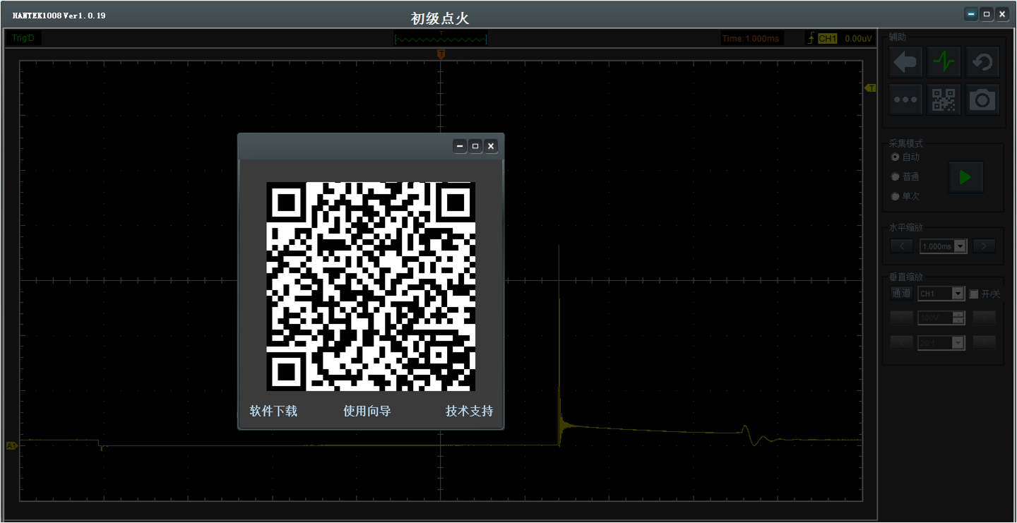 一键调出快速指导栏,每项汽车测试功能都有专门的视频指导,包含接线方法、调节方式、参考波形等。支持二维码扫描查看。
