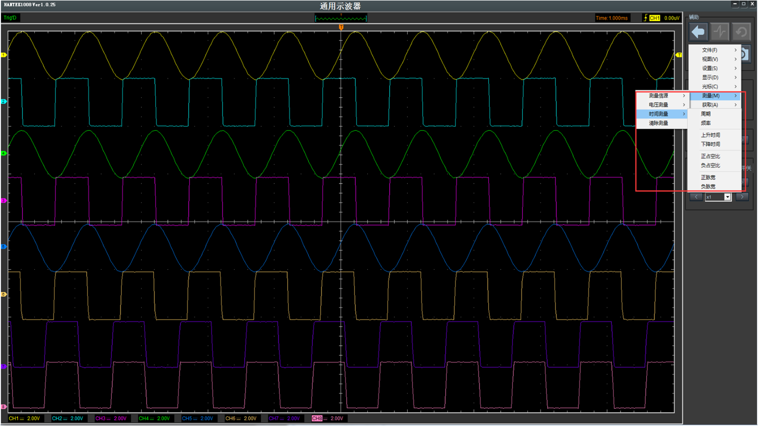 可同时测量8路信号、每路测量电压可独立调节,通道可任意选择打开或关闭。