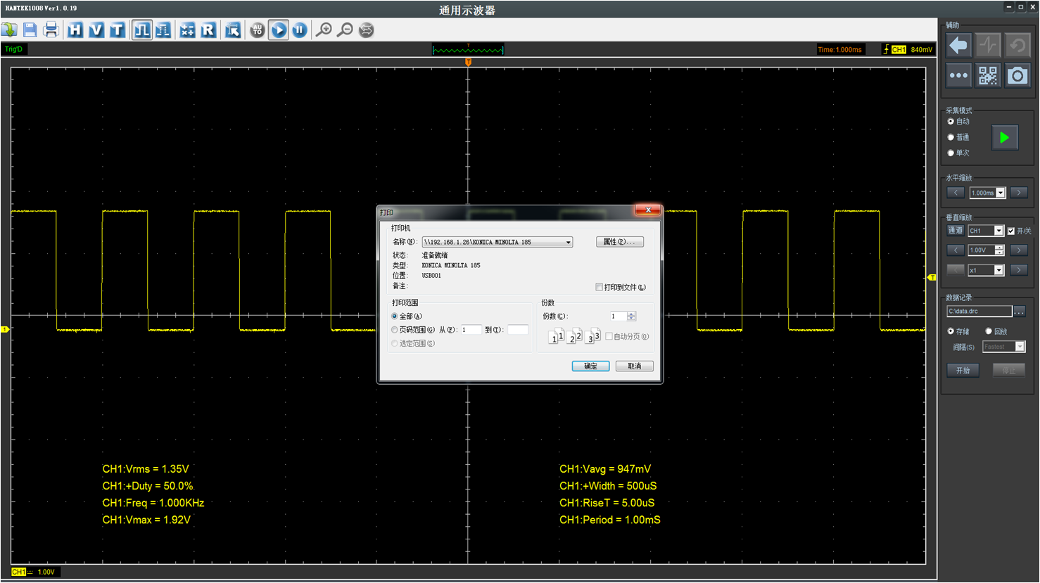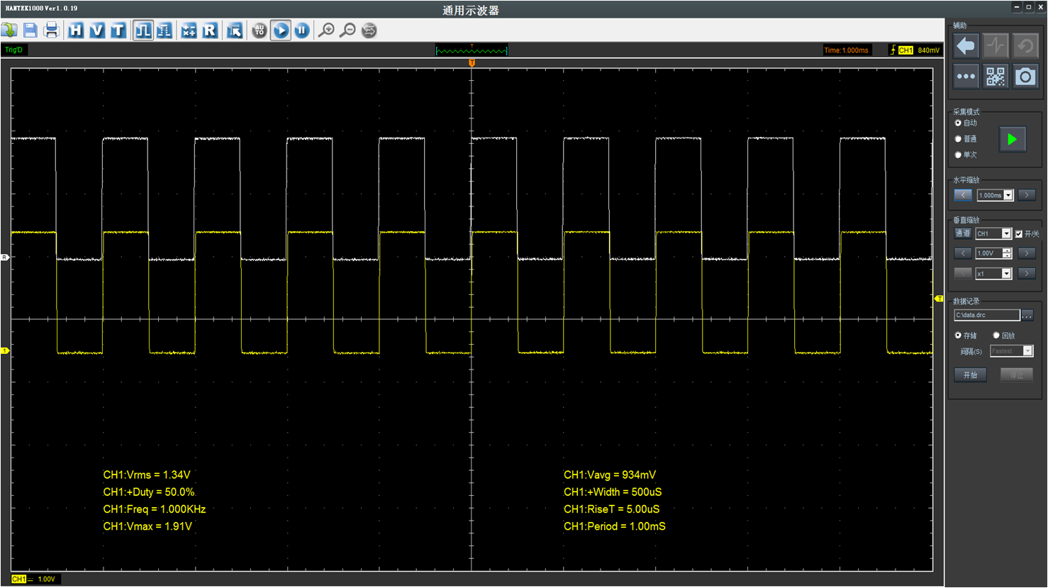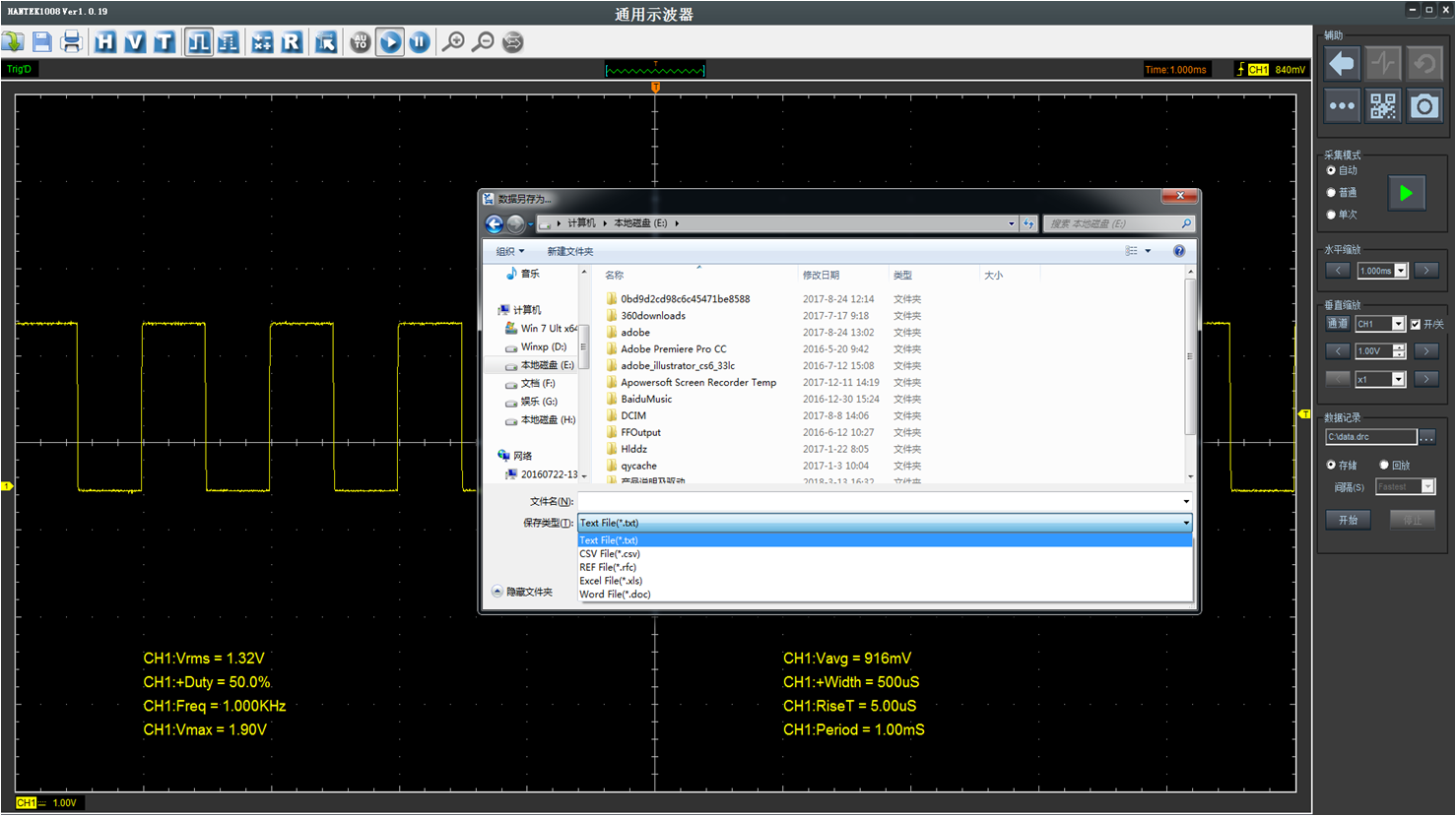 支持波形录制和回放,录制的波形直接保存到电脑硬盘上,方便读取。录制时间没有限制,方便长时间测量录制波形,排查异常信号。